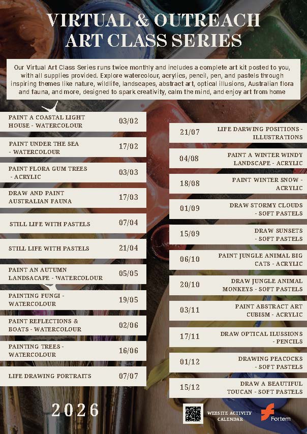 ARTea Art School is an experienced provider of art-based wellbeing programs, and facilitator Dianne Burton brings warmth, expertise and a strong understanding of how creativity supports mental health. Her inclusive and engaging approach ensures participants feel comfortable, supported and connected throughout each session.